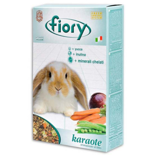 FIORY Karaote корм для кроликов. Это полноценное питание для вашего питомца. Корм содержит не менее 12 различных элементов, которые понравятся кролику. В состав корма входит высококачественная сушеная морковь, провансальский чабрец, богатый витаминами, минералами, клетчаткой и инулином, обеспечивающим правильное пищеварение животного, толченый горошек, бобы рожкового дерева, а также питательные гранулы, полезные для здоровья кролика. Все эти элементы помогут вашему любимцу быть здоровым, иметь крепкие зубы, мягкую и гладкую шерстку и здоровое пищеварение.
