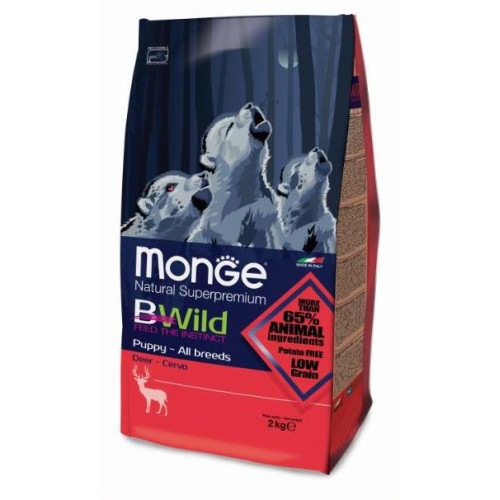 MONGE DOG BWILD PUPPY & JUNIOR — ДИКИЙ ОЛЕНЬ СБАЛАНСИРОВАННЫЙ ПОЛНОРАЦИОННЫЙ КОРМ ДЛЯ ЩЕНКОВ ВСЕХ ПОРОД