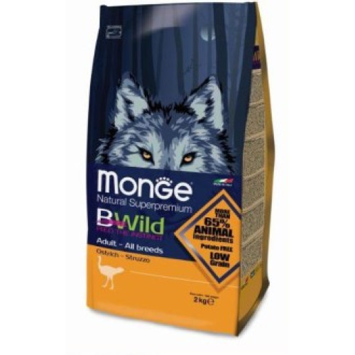 Полноценный сбалансированный рацион для взрослых собак всех пород. Мясо страуса является основным источником легкоусвояемых животных белков. Корм идеально подходит для собак с особыми потребностями, нуждающихся в сбалансированном питании. Высокая усвояемость корма гарантирует поступление в организм оптимального количества питетельных веществ, которые помогают формировать и поддерживать мускулатуру и активность животного. Пониженное содержание углеводов обеспечивает оптимальный вес животного. Лесные ягоды и травы - источники питательных веществ, натуральной клетчатки и биологически активных компонентов.
