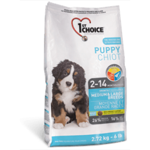 1ST CHOICE НФ сухой корм для щенков средних и крупных пород, курица. Обогащен дополнительными протеинами, витаминами, кальцием и другими важными минералами, необходимыми для роста костей и жизненной силы. Обеспечивает плавный переход к твердой пище после отъема от матери. Форма и размер гранул специально адаптированы к особенностям зубов щенков и помогают развивать жевательные навыки. Гарантируемый анализ: сырые белки 26% минимум, сырые жиры 16% минимум, сырые волокна 4,5% максимум, влажность 10% максимум,зола 9,5% максимум, кальций 1,5% минимум, фосфор 1% минимум, витамин А 23000 IU/кг минимум, витамин D3 23000 IU/кг минимум, витамин Е 140 IU/кг минимум, глюкозамин сульфат*500 мг/кг минимум, хондроитин сульфат*250 мг/кг минимум. Ингридиенты: мука из мяса цыпленка, овсяная крупа, дробленый рис, перловая крупа, куриный жир (в качестве консерванта — смесь токоферолов, источник витамина Е) , сушеная мякоть свеклы, сушеная мякоть томатов, дегидрированное яйцо, лецитин, измельченная клетчатка, цельное семя льна, гидролизат куриной печени, фосфат мононатрия, жир сельди, калий хлорид, холинхлорид, соль, кальция пропинат (в качестве консерванта), дрожжевой экстракт, карбонат кальция, аскорбиновая кислота ( витамин С), таурин, экстракт цикория (инсточник инулина), сульфат железа, сульфат глюкозамина, оксид цинка, ацетат ɑ-токоферола (источник витамина Е), хондроитин сульфат, экстракт Юкки Шидигера, пептид коллагена, протеинат железа, протеинат цинка, селенит натрия, мононитрат тиамина, мука из водорослей, экстракт зеленого чая, сушеная мята, сушеная петрушка, сульфат меди, йодат кальция, пиридоксина гидрохлорид, оксид марганца, протеинат марганца, экстракт имбиря, никотиновая кислота,d-пантотенат кальция, супплемент витамина A, протеинат меди, холикальцеферол ( витамин D3), фолиевая кислота, рибофлавин,бисульфат менадиона никотинамида (витамин K3), биотин, супплемент витамина B12 , биотин, карбонат кобальта. Преимущества: DHA: Жир сельди (источник DHA) улучшает развитие центральной нервной системы и остроту психических реакций. Кальций +: Уникальное сочетание минералов, кальция и витаминов обеспечивает оптимальной развитие костей животного. Пребиотики +: Натуральные пребиотики, такие как экстракт цикория - источник инулина (фрукто-олигосахарид)и дрожжевой экстракт ( маннан-олигосахарид) способствуют росту и развитию полезной кишечной микрофлоры, которая поддерживает иммунную систему. Компания PLB International производит сухие корма для кошек и собак с 1969 года в стране с самым жестким ветеринарным контролем и прекрасными экологическими условиями. Корма "1st Choice (Фест Чойс)", "ProNature (Пронатюр)" изготовляются только в Канаде, в провинции Квебек со всеми требованиями AAFCO (Американской Ассоциации контроля качества продуктов питания) и сертифицированы ACМV (Канадской Ветеринарной Медицинской Ассоциацией). Все производственные процессы, начиная от закупки сырья и до конечной стадии производства, заверены НАССР (Центр Анализа и химического Контроля продуктов питания.