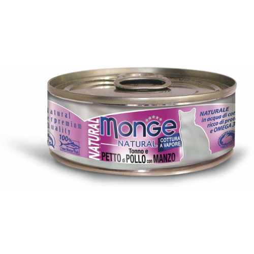 Monge Cat Natural консервы для кошек тунец с курицей и говядиной 80 г
