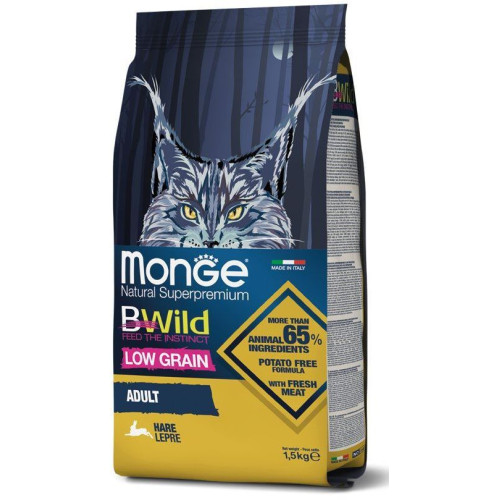 Monge Bwild Cat Hare корм для взрослых кошек с мясом зайца 1,5 кг.
