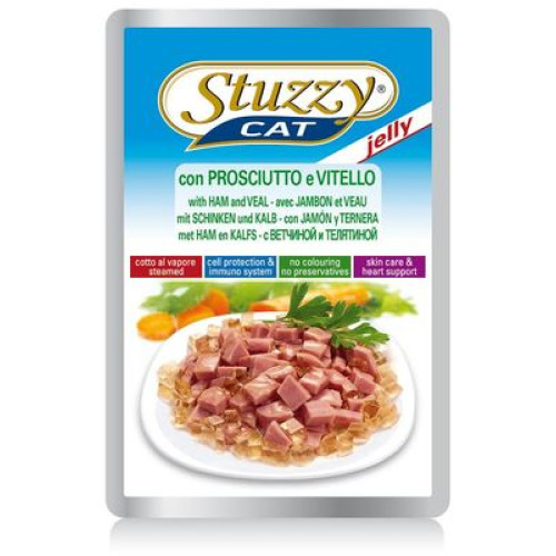Консервы (Паучи) Stuzzy Cat для Кошек с Телятиной и ветчиной в желе - это вкусное и полезное питание для Вашего питомца. Влажный корм Stuzzy Cat с кроликом в желе не содержит икусственых красителей, ароматизаторов или консервантов. Кроме этого, данный корм содержит таурин и обогащен витамином Е для правильной работы иммуной системы