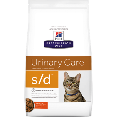 HILLS Prescription Diet S/D (сух. корм д/кошек с заболеваниями нижних мочевыводящих путей). Сухой корм для диетотерапии кошек при заболеваниях нижних мочевыводящих путей. Заболевания мочевыводящих путей часто вызываются формированием минеральных кристаллов и камней. Это вызывает у животного дискомфорт, появление крови в моче и даже представляет угрозу жизни животного в случае обструкции. У кошек, чаще всего причиной заболеваний мочевыводящих путей являются струвиты. Prescription Diet* Feline s/d* разработан для помощи в растворении струвитных кристаллов и камней у кошек. Струвиты часто формируются в моче, перенасыщенной протеином, фосфором и магнием в сочетании с щелочной рН мочи. Показания: Заболевания нижних мочевыводящих путей кошек, растворение струвитов. Противопоказания: Котята. Беременные или лактирующие кошки. Первые 1-2 недели после операции. Кошки, получающие закислители мочи, Кормление более 6 месяцев без мониторинга кислотно-щелочного баланса (вследствие способности увеличивать кислотность мочи). Кошки с мочекаменной болезнью не струвитного типа Кошки с сердечной недостаточностью, гипертензией, заболеваниями почек, гиперкалиемией или метаболическим ацидозом. Ингридиенты: Молотый рис, мука из цыпленка и индейки, животный жир, мука из кукурузного глютена, дигест, сухое цельное яйцо, цитрат калия, калия хлорид, соль, DL-метионин, таурин, витамины и микроэлементы. Содержит одобренный ЕС антиоксидант.