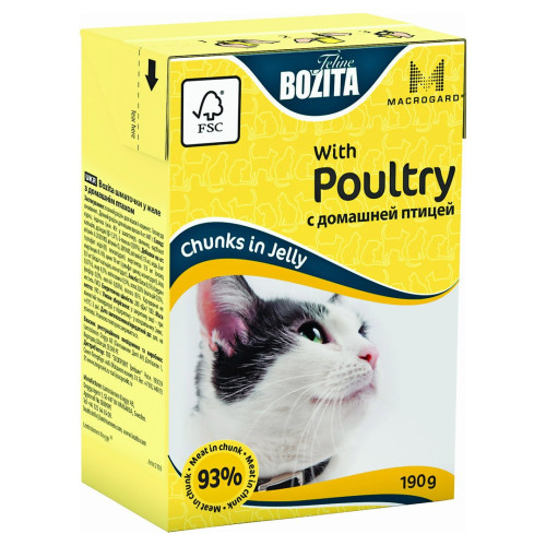 курица, индейка (мин. 4% в кусочке), свинина, карбонат кальция, дрожжи МacroGard® (?-13 1,6 - глюкан).