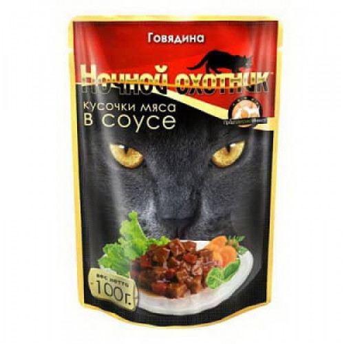 Ночной охотник пауч мясные кусочки в соусе для кошек говядина 100гр.