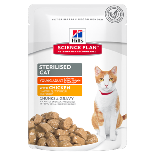 Влажный корм Hill's Feline Young Adult Sterilised разрабатывался специально для потребностей молодых, кастрированных кошек.