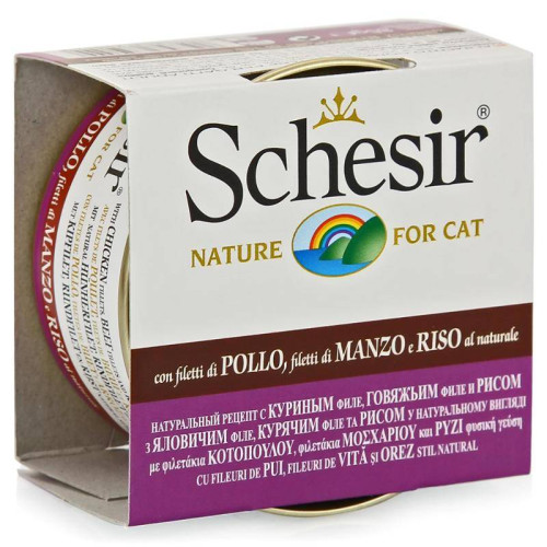 Schesir (Шезир) консервированный корм для кошек:Цыпленок, говядина, рис