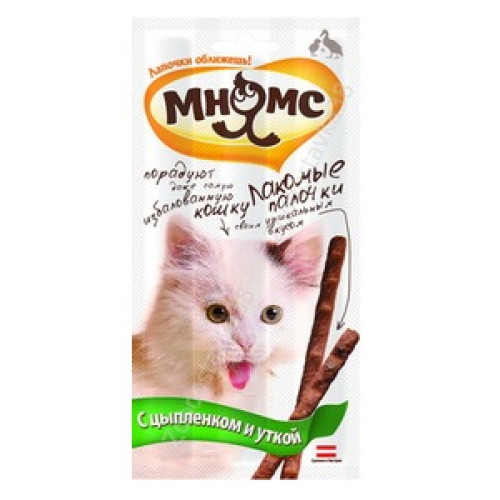 Лакомые палочки "Мнямс" - вкусное и здоровое угощение, от которого не откажется даже самая привередливая и избалованная кошка. Каждая палочка индивидуально упакована, что позволяет сохранить запах и вкусовые качества надолго. "Мнямс" Лакомые палочки для кошек с цыпленком и уткой. Состав: мясо и мясопродукты животного происхождения (89 %, из них 16 % мясо цыпленка и 5 % мясо утки), дрожжи, сахар, минералы, витамин А — 5000 МЕ/кг, витамин D3 — 500 МЕ/кг, витамин Е — 5 мг/кг, таурин — 1000 мг/кг, антиокислитель (антиоксиданты), консерванты.Действие витаминов гарантировано в течение всего срока годности. Анализ: Белок 34%, Жир 19%, Зола 1%, Клетчатка 9%, Влажность 27%. Этот восхитительный вкус придется по душе вашей кошечке! В одной упаковке 3 лакомых палочки по 5 гр. Норма потребления: котята, начиная с 4-х месяцев по половине палочки в день. Взрослые кошки 1-2 палочки в день (в зависимости от размера и активности кошки). Производитель: Pro Pet (Австрия)