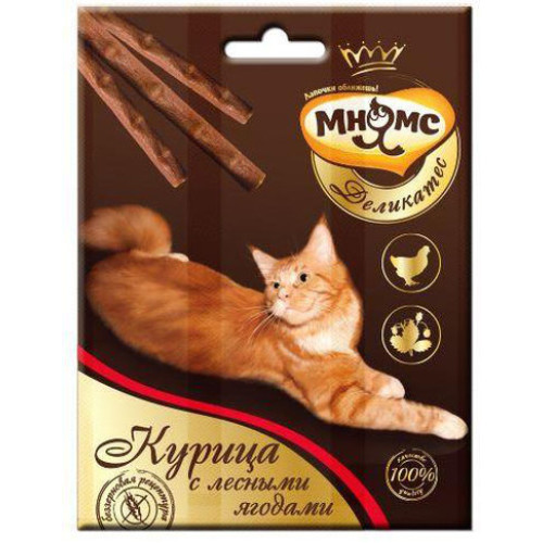 Мнямс Деликатес лакомые палочки 9 см для кошек с курицей и лесными ягодами 3х4г