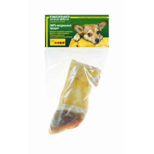 Высушенная говяжья голень с копытом, разрезанная вдоль . Высокое содержание хрящевой и соединительной ткани. Обеспечивает дополнительное поступление в организм составных элементов для роста, развития и поддержания в норме суставов. Рекомендовано для собак крупных и гигантских пород с 1,5 - 2 месячного возраста. Отличная игрушка в Ваше отсутствие. Особенно рекомендуется для собак живущих в вольерных и уличных условиях. Средняя масса до 0,4 кг, упакована в пакет 14*25 см.