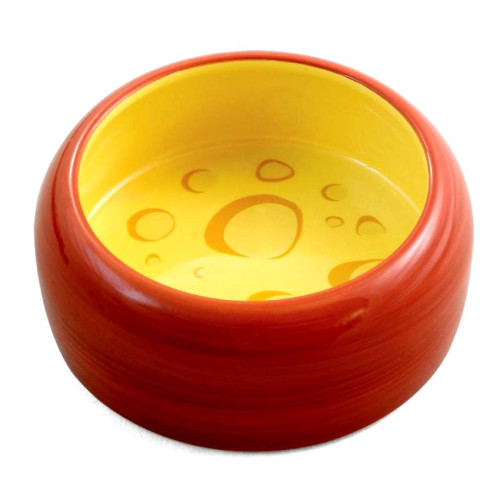 Стильная и функциональная миска для мелких животных выполнена из высококачественной керамики оригинальной расцветки. Такая миска идеально подойдет как для воды, так и для корма любой консистенции. Она комфортна для питомца и легко моется под струей проточной воды с использованием моющих бытовых средств. А оригинальный "сырный" дизайн позволит ей стать украшением любого интерьера. Размер: d дна - 105мм; d верхней части - 85мм; высота - 45мм. Объем 0,25л.