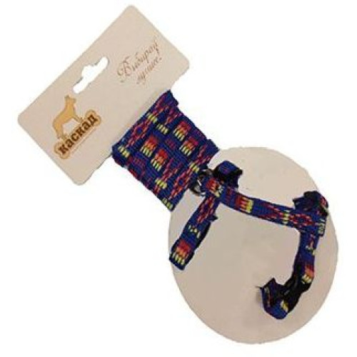 Каскад комплект нейлон Орнамент поводок и шлейка синий для кошек или для собак миниатюрных пород. Поводок 10 мм,120см Шлейка 15 мм. 25 см. цвет синий