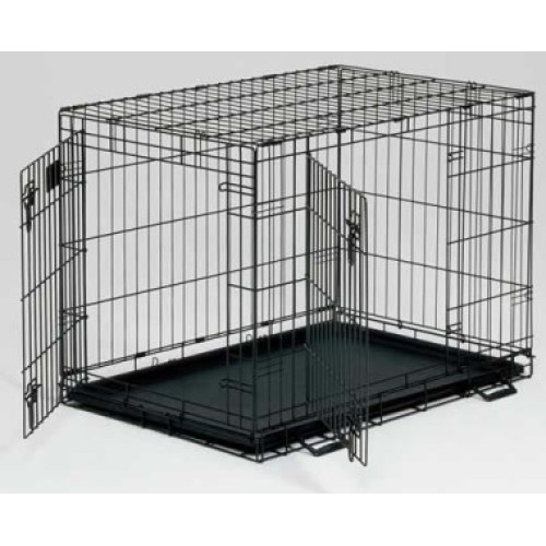 Двери расположены на смежных боковых сторонах. Удобный, крепкий двойной замок-задвижка позволяет закрыть клетку как снаружи, так и изнутри.