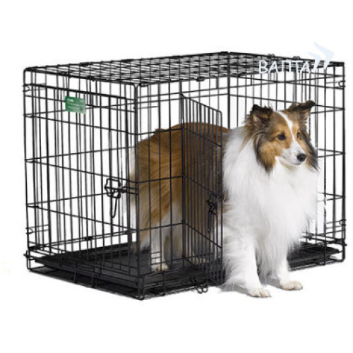 Клетка для домашних животных iCrate с двумя дверьми. Устойчивая, крепкая клетка выполнена из качественного метала, обеспечивающего безопасность животного и хозяина. Двери расположены на смежных боковых сторонах клетки. Удобный, крепкий двойной замок-задвижка позволяет закрыть клетку как снаружи, так и изнутри.