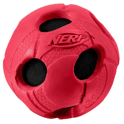 Игрушка для собак Nerf "Мяч с отверстиями" выполнена из прочной резины с теннисным мячом внутри. Внутренний мяч пищит при нажатии. Такая игрушка порадует вашего любимца, а вам доставит массу приятных эмоций, ведь наблюдать за игрой всегда интересно и приятно. Диаметр игрушки: 5 см.