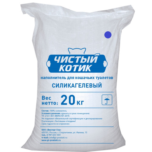 Силикагелевый наполнитель "Чистый котик" из дробленого кускового силикагеля не пылит, не прилипает к шерсти животного и не разносится по дому.