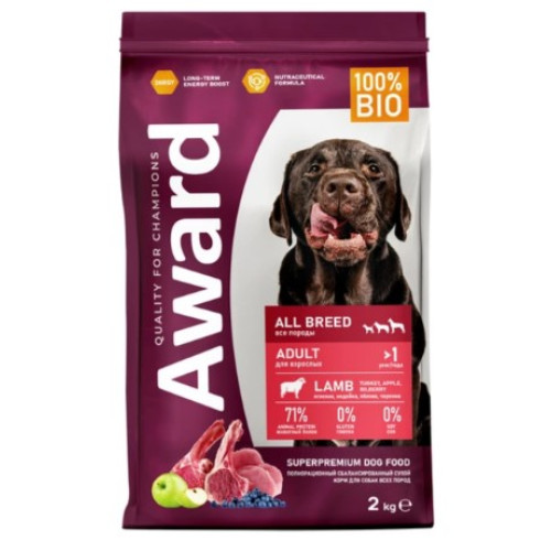 Сухой корм AWARD для взрослых собак всех пород с ягненком с индейкой с добавлением яблока и черники