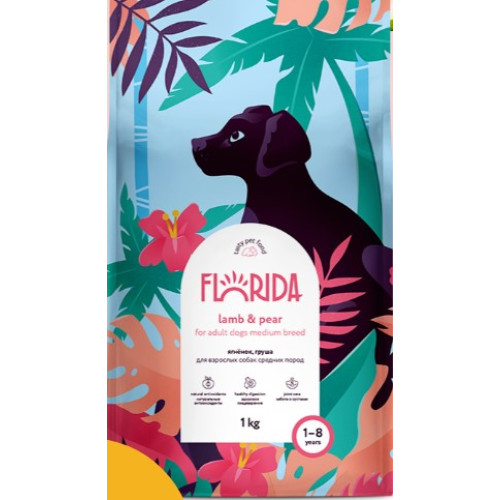 Florida Lamb and Pear - сухой корм супер-премиум класса с ягненком и грушей для взрослых собак средних пород. Сбалансированное полнорационное питание, способствующее правильному функционированию всего организма и нормализации пищевых процессов.
