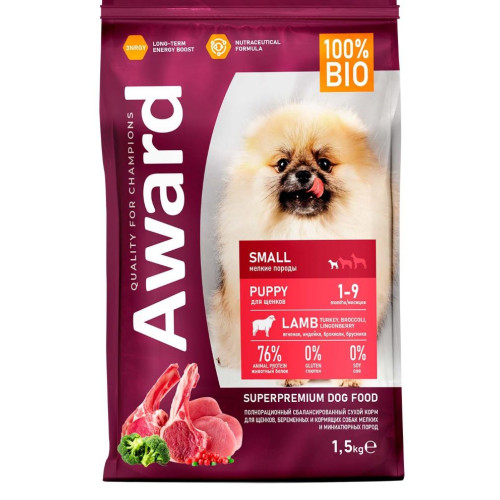 Сухой корм AWARD для щенков от 1 месяца, беременных и кормящих сук всех пород с ягненком и индейкой с добавлением яблока и черники 12 кг.
