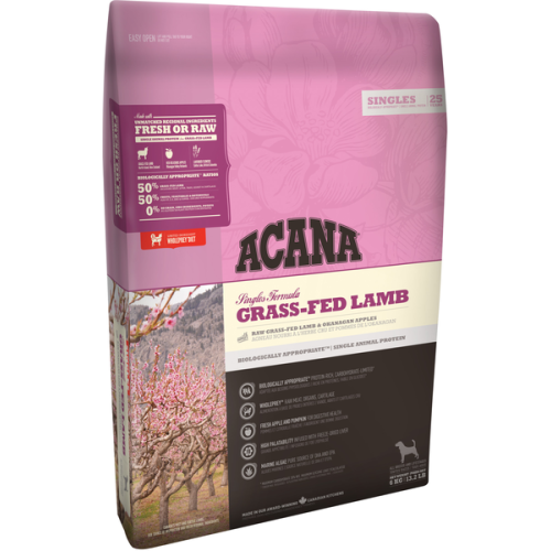 Корм ACANA Grass - Fed Lamb с одним источником белка на 50% состоит из мяса новозеландского ягненка, которое доставляется на фабрику сырым и используется в соотношении WholePrey («добыча целиком»). Включенная в состав сублимированная печень привлечет даже привередливых питомцев. А клетчатка, содержащаяся в свежих яблоках, мускатной и столовой тыквах, наладит чувствительное пищеварение.