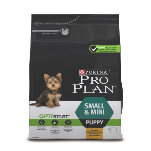 Корм сухой полнорационный для щенков мелких и карликовых пород Purina® PRO PLAN® Small & Mini Puppy с комплексом OPTISTART®, с курицей и рисом.