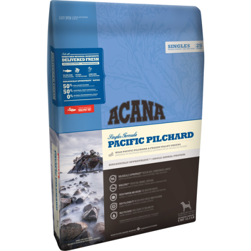 Корм ACANA Pacific Pilchard с одним источником белка на 50% состоит из выловленной на воле сардины, которая доставляется на фабрику свежим и используется в соотношении WholePrey («добыча целиком»). Включенная в состав сублимированная печень привлечет даже привередливых питомцев. А клетчатка, содержащаяся в мускатной, столовой тыквах и свежей зелени, наладит чувствительное пищеварение.